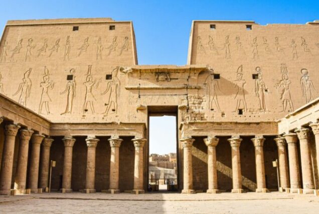 Besuchen Sie am frühen Morgen den Edfu-Tempel, der dem Gott Horus mit der Pferdekutsche gewidmet ist