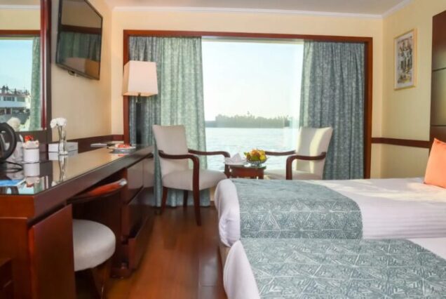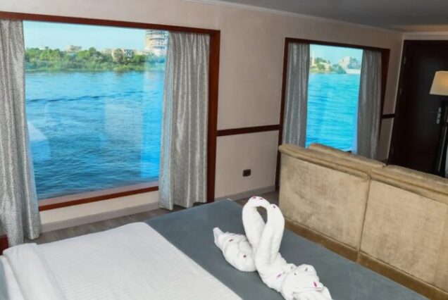 Jeden Donnerstag ab Luxor. Es handelt sich um eine luxuriöse Nilkreuzfahrt mit 62 klimatisierten Kabinen mit einer durchschnittlichen Größe von 24 Quadratmetern pro Kabine. Es ist ein erstaunliches Erlebnis mit der einzigartigen Natur des Nils zwischen Luxor und Assuan, gemischt mit der antiken Geschichte der Pharaonen und Tempeln wie dem Tal der Könige, dem Hatschepsut-Tempel, dem Karnak-Tempel, dem Luxor-Tempel, dem Edfu-Tempel, dem Kom-Ombo-Tempel und dem Philae-Tempel.
